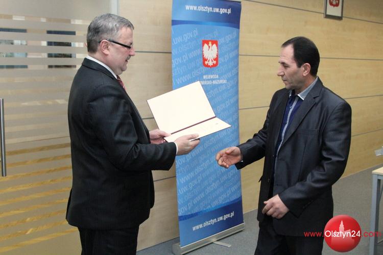 Uroczystość wręczenia przez wojewodę warmińsko-mazurskiego Mariana Podziewskiego aktów nadania obywatelstwa polskiego 10 nowym mieszkańcom Warmii i Mazur | Urząd Wojewódzki w Olsztynie | 21.01.2014