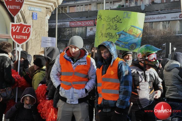 Happening zorganizowany przez uczniów i grono pedagogiczne Zespołu Szkół Elektronicznych i Telekomunikacyjnych w Olsztynie. Uczniowie zatańczyli poloneza przed olsztyńskim ratuszem, następnie ruszyli na starówkę w kolorowym korowodzie | Centrum Olsztyna | 24.01.2014 r.