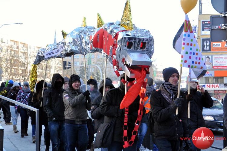 Happening zorganizowany przez uczniów i grono pedagogiczne Zespołu Szkół Elektronicznych i Telekomunikacyjnych w Olsztynie. Uczniowie zatańczyli poloneza przed olsztyńskim ratuszem, następnie ruszyli na starówkę w kolorowym korowodzie | Centrum Olsztyna | 24.01.2014 r.