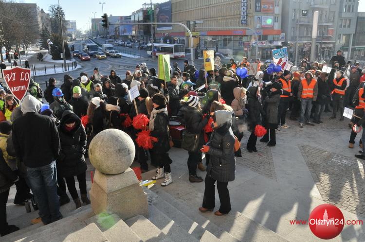 Happening zorganizowany przez uczniów i grono pedagogiczne Zespołu Szkół Elektronicznych i Telekomunikacyjnych w Olsztynie. Uczniowie zatańczyli poloneza przed olsztyńskim ratuszem, następnie ruszyli na starówkę w kolorowym korowodzie | Centrum Olsztyna | 24.01.2014 r.