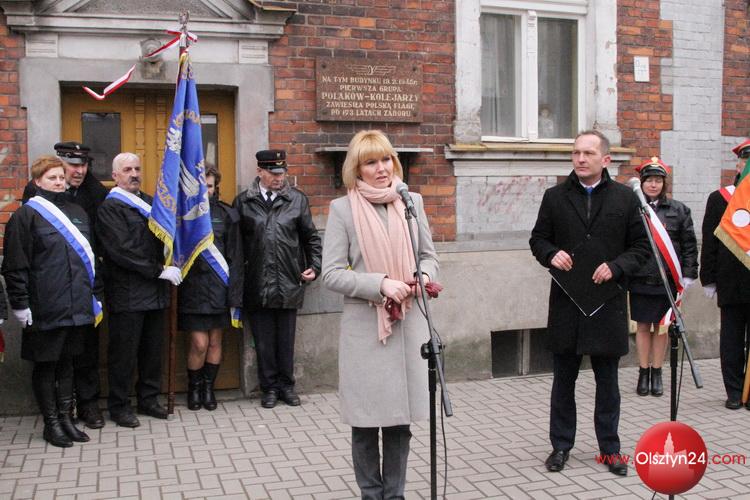 Uroczystość pod tablicą upamiętniającą rocznicę przyjazdu do Olsztyna pierwszej grupy Polaków - kolejarzy z Białegostoku - 19.02.1945 roku | Olsztyn, ul. Zientary-Malewskiej 2 | 19.02.2015