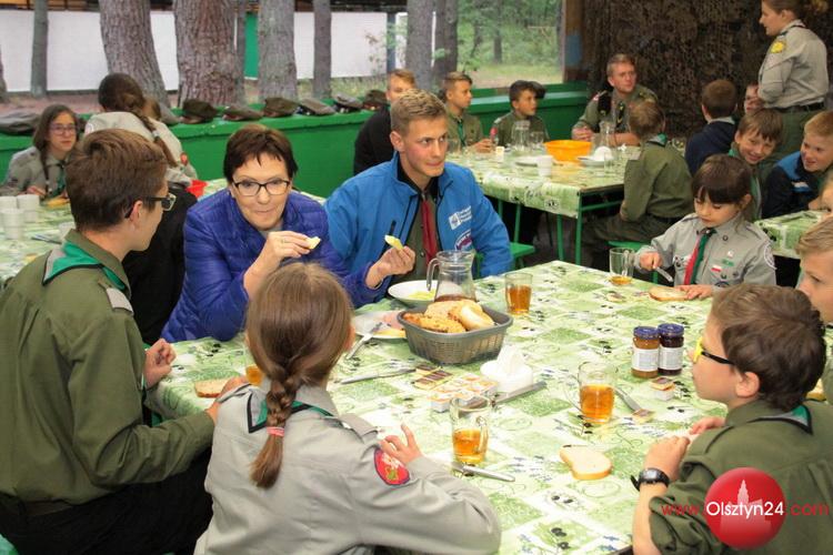 Przygotowania do uroczystości zakończenia i uroczystość zakończenia I turnusu wypoczynkowego w obozie harcerskim Hufca Warmińskiego Bałdy Piec z udziałem premier Ewy Kopacz | Bałdy-Piec | 10.07.2015