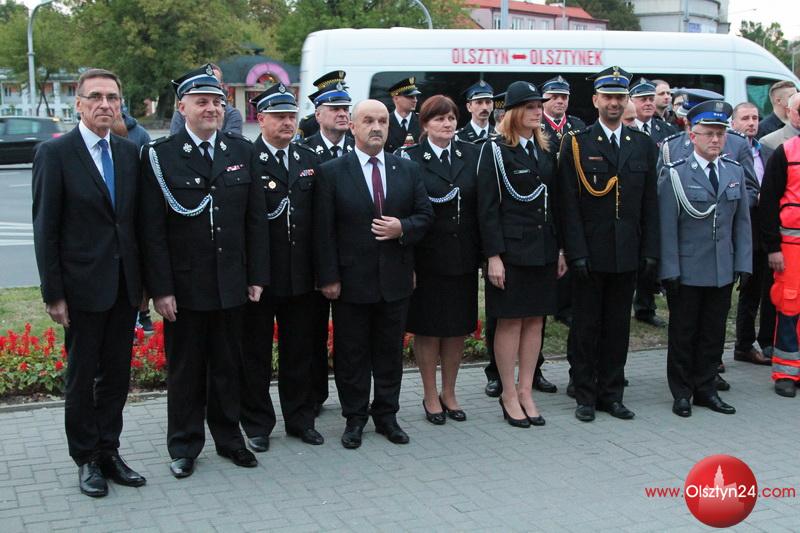 Apel przed siedzibą Zarządu Oddziału Wojewódzkiego ZOSP RP oraz Komendy Wojewódzkiej i Miejskiej PSP w Olsztynie przy pomniku poświęconym Strażakom poległym w akcji w 14. rocznicę zamachu na World Trade Center | Olsztyn, ul. Niepodległości | 11.09.2015