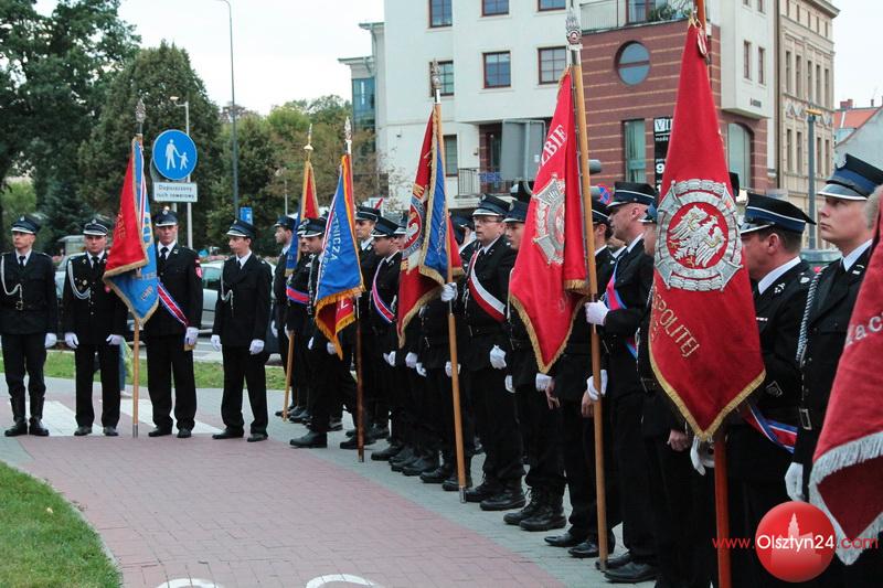 Apel przed siedzibą Zarządu Oddziału Wojewódzkiego ZOSP RP oraz Komendy Wojewódzkiej i Miejskiej PSP w Olsztynie przy pomniku poświęconym Strażakom poległym w akcji w 14. rocznicę zamachu na World Trade Center | Olsztyn, ul. Niepodległości | 11.09.2015