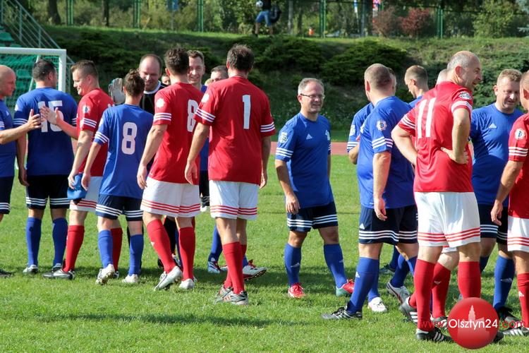 Piłkarski mecz pokazowy pomiędzy kierownictwem KWP w Olsztynie a Osobowościami Warmii i Mazur