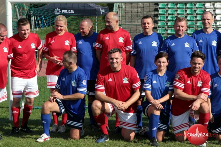 Piłkarski mecz pokazowy pomiędzy kierownictwem KWP w Olsztynie a Osobowościami Warmii i Mazur