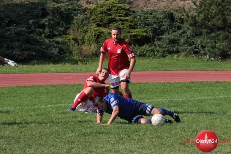 Piłkarski mecz pokazowy pomiędzy kierownictwem KWP w Olsztynie a Osobowościami Warmii i Mazur