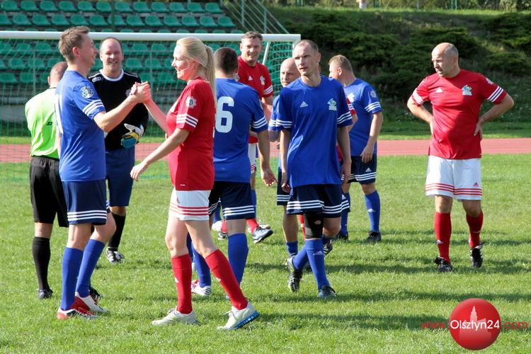 Piłkarski mecz pokazowy pomiędzy kierownictwem KWP w Olsztynie a Osobowościami Warmii i Mazur