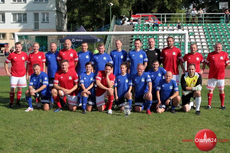 Piłkarski mecz pokazowy pomiędzy kierownictwem KWP w Olsztynie a Osobowościami Warmii i Mazur