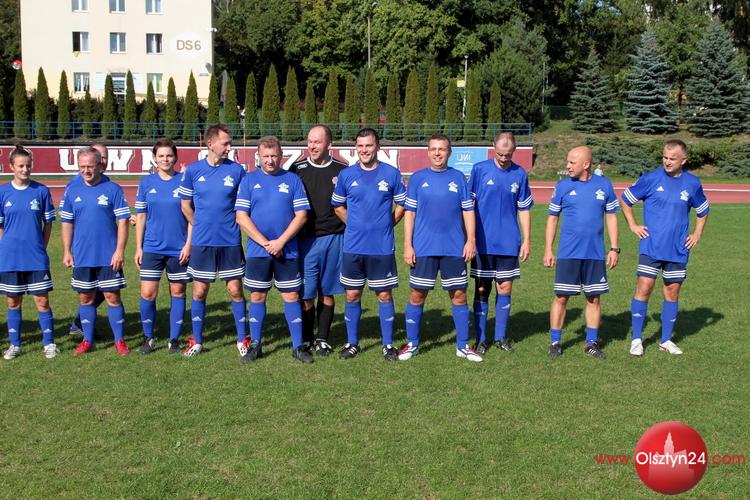Piłkarski mecz pokazowy pomiędzy kierownictwem KWP w Olsztynie a Osobowościami Warmii i Mazur