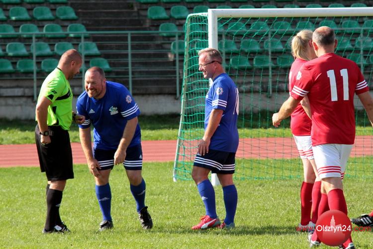 Piłkarski mecz pokazowy pomiędzy kierownictwem KWP w Olsztynie a Osobowościami Warmii i Mazur