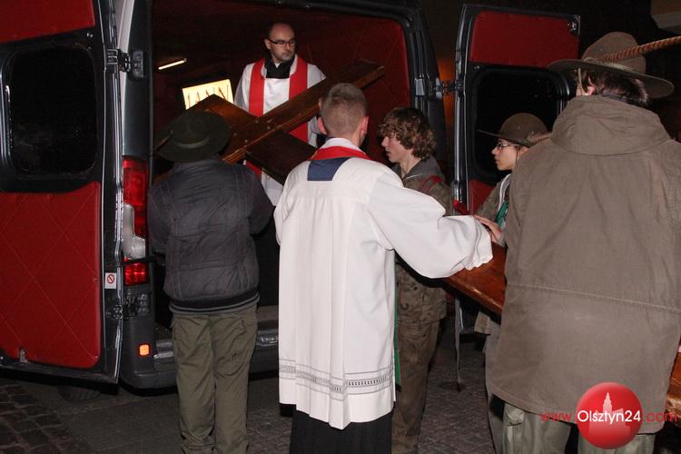 Powitanie symboli Światowych Dni Młodzieży Kraków 2016 - krzyża i ikony Matki Boskiej Śnieżnej rozpoczynających peregrynację po Archidiecezji Warmińskiej | Olsztyn, Stare Miasto i Katedra św. Jakuba | 4.11.2015