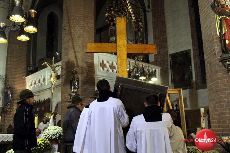 Powitanie symboli Światowych Dni Młodzieży Kraków 2016 - krzyża i ikony Matki Boskiej Śnieżnej rozpoczynających peregrynację po Archidiecezji Warmińskiej | Olsztyn, Stare Miasto i Katedra św. Jakuba | 4.11.2015