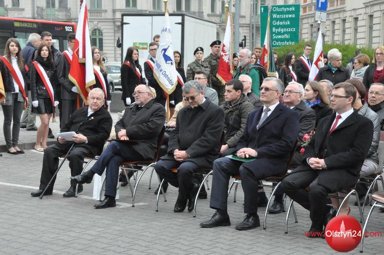 Uroczystość złożenia wieńców i wiązanek kwiatów pod tryptykiem upamiętniającym wystąpienia olsztyńskich studentów w październiku 1956 roku solidaryzujących się z powstańcami węgierskimi | Olsztyn, Pl. Bema | 13.04.2016