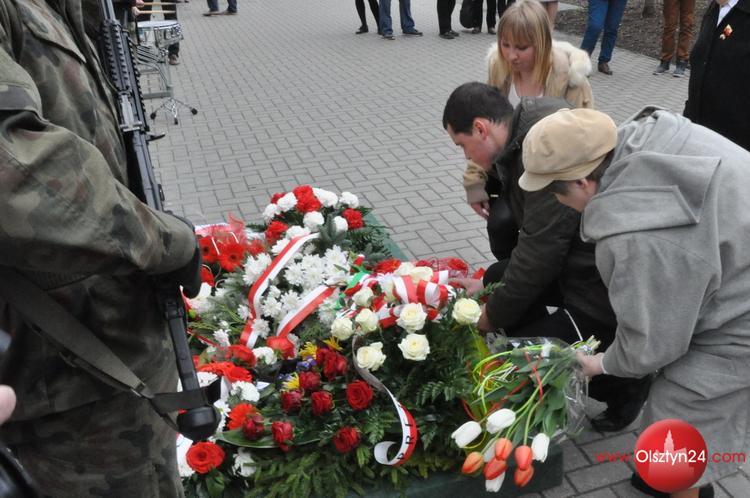 Uroczystość złożenia wieńców i wiązanek kwiatów pod tryptykiem upamiętniającym wystąpienia olsztyńskich studentów w październiku 1956 roku solidaryzujących się z powstańcami węgierskimi | Olsztyn, Pl. Bema | 13.04.2016