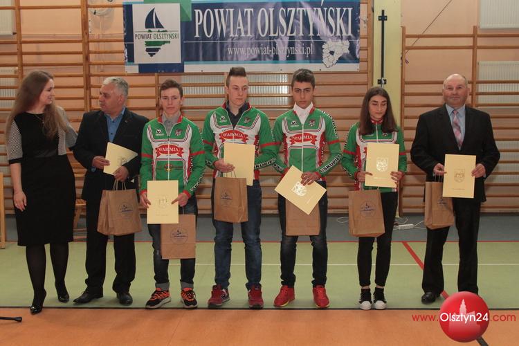 Uroczystość wyróżnienia sportowców, trenerów i działaczy z terenu Powiatu Olsztyńskiego za osiągnięcia w 2015 roku | Hala OSiR w Jezioranach | 25.04.2016