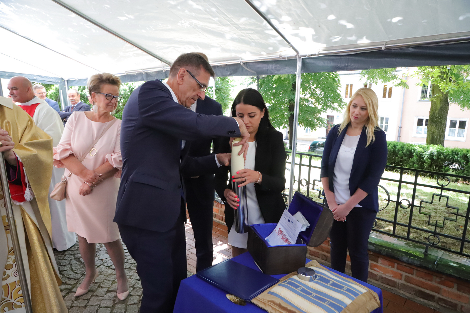 Oddanie do użytku nowego zdroju ulicznego, którego patronami zostali święci Jan i Jakub. | Plac przy bazylice konkatedralnej św. Jakuba w Olsztynie | 24.06.2018
