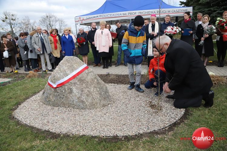 Uroczystość poświęcona posadzeniu Dębu Pamięci poświęconego starszemu Posterunkowemu Policji Państwowej Wincentemu Bombie | Szkoła Policealna im. Prof. Zbigniewa Religi w Olsztynie | 9.04.2019