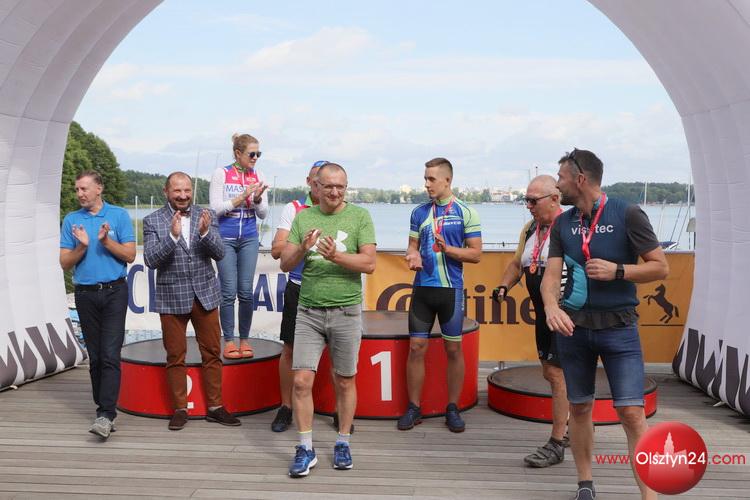 Fotki z mety i ceremonii dekoracji najlepszych rowerzystów na dystansach PRO i 1/2 PRO Cisowianka Mazovia MTB Marathon | Centrum Żeglarstwa Wodnego i Lodowego w Olsztynie | 8.08.2021