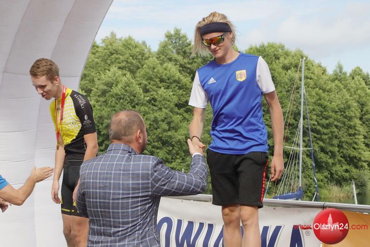 Fotki z mety i ceremonii dekoracji najlepszych rowerzystów na dystansach PRO i 1/2 PRO Cisowianka Mazovia MTB Marathon | Centrum Żeglarstwa Wodnego i Lodowego w Olsztynie | 8.08.2021