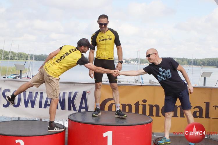 Fotki z mety i ceremonii dekoracji najlepszych rowerzystów na dystansach PRO i 1/2 PRO Cisowianka Mazovia MTB Marathon | Centrum Żeglarstwa Wodnego i Lodowego w Olsztynie | 8.08.2021