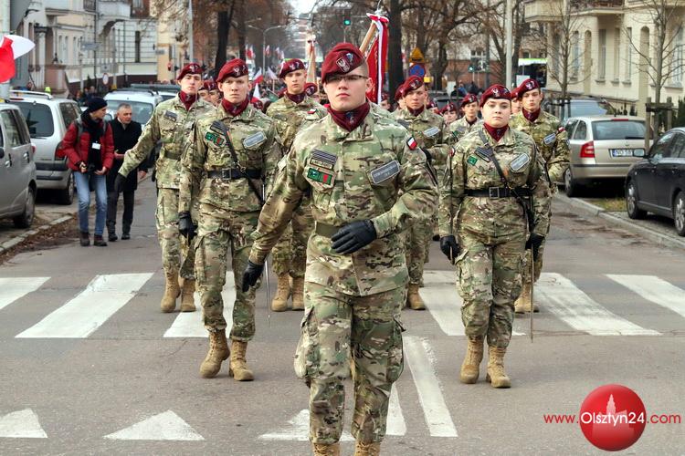 Przemarsz uczestników uroczystości ulicą Mickiewicza w Olsztynie | 11.11.2021