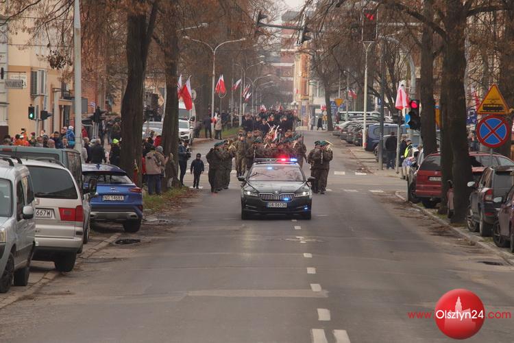 Przemarsz uczestników uroczystości ulicą Mickiewicza w Olsztynie | 11.11.2021