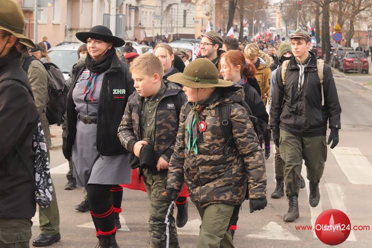 Przemarsz uczestników uroczystości ulicą Mickiewicza w Olsztynie | 11.11.2021