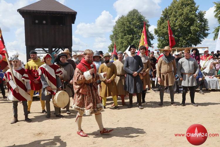 Powitanie na Polach Grunwaldu rekonstruktorów średniowiecza biorących udział w Dniach Grunwaldu | Pola Grunwaldu w Stębarku | 14.07.2023