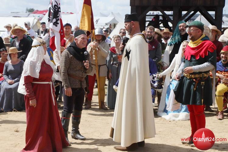 Powitanie na Polach Grunwaldu rekonstruktorów średniowiecza biorących udział w Dniach Grunwaldu | Pola Grunwaldu w Stębarku | 14.07.2023