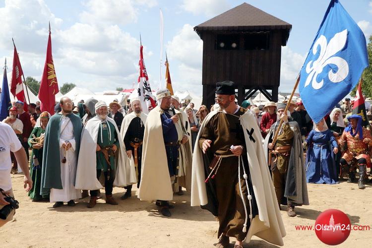 Powitanie na Polach Grunwaldu rekonstruktorów średniowiecza biorących udział w Dniach Grunwaldu | Pola Grunwaldu w Stębarku | 14.07.2023