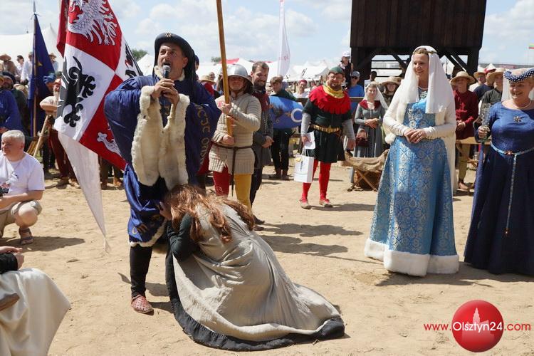 Powitanie na Polach Grunwaldu rekonstruktorów średniowiecza biorących udział w Dniach Grunwaldu | Pola Grunwaldu w Stębarku | 14.07.2023