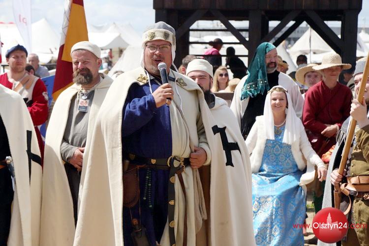 Powitanie na Polach Grunwaldu rekonstruktorów średniowiecza biorących udział w Dniach Grunwaldu | Pola Grunwaldu w Stębarku | 14.07.2023