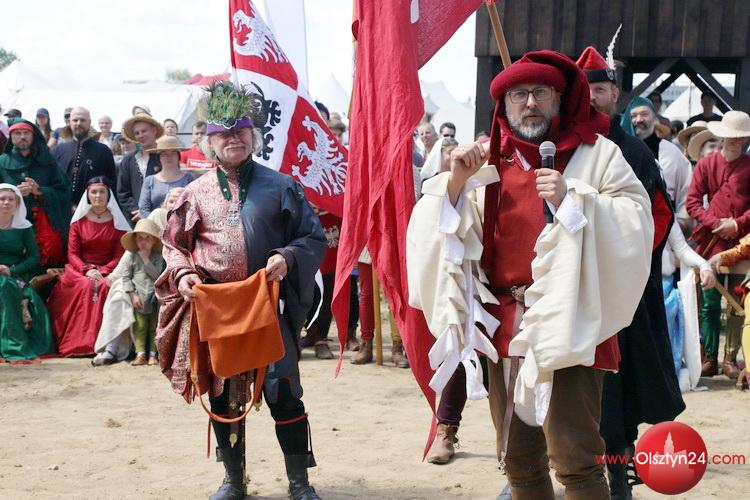 Powitanie na Polach Grunwaldu rekonstruktorów średniowiecza biorących udział w Dniach Grunwaldu | Pola Grunwaldu w Stębarku | 14.07.2023
