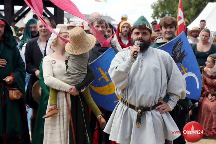 Powitanie na Polach Grunwaldu rekonstruktorów średniowiecza biorących udział w Dniach Grunwaldu | Pola Grunwaldu w Stębarku | 14.07.2023
