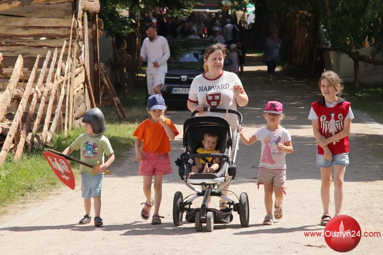 Powitanie na Polach Grunwaldu rekonstruktorów średniowiecza biorących udział w Dniach Grunwaldu | Pola Grunwaldu w Stębarku | 14.07.2023