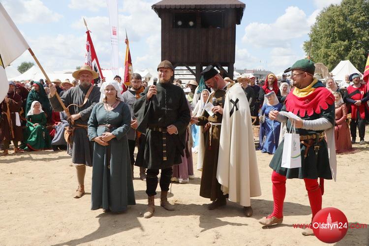 Powitanie na Polach Grunwaldu rekonstruktorów średniowiecza biorących udział w Dniach Grunwaldu | Pola Grunwaldu w Stębarku | 14.07.2023