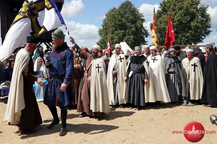 Powitanie na Polach Grunwaldu rekonstruktorów średniowiecza biorących udział w Dniach Grunwaldu | Pola Grunwaldu w Stębarku | 14.07.2023