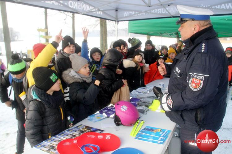 Zorganizowany przez Starostwo Powiatowe i Komendę Miejską Policji w Olsztynie festyn dla uczniów szkół podstawowych z terenu Powiatu Olsztyńskiego przed feriami zimowymi 2024 r. | Kąpielisko Miejskie w Swobodnej gm. Dobre Miasto | 18.01.2024