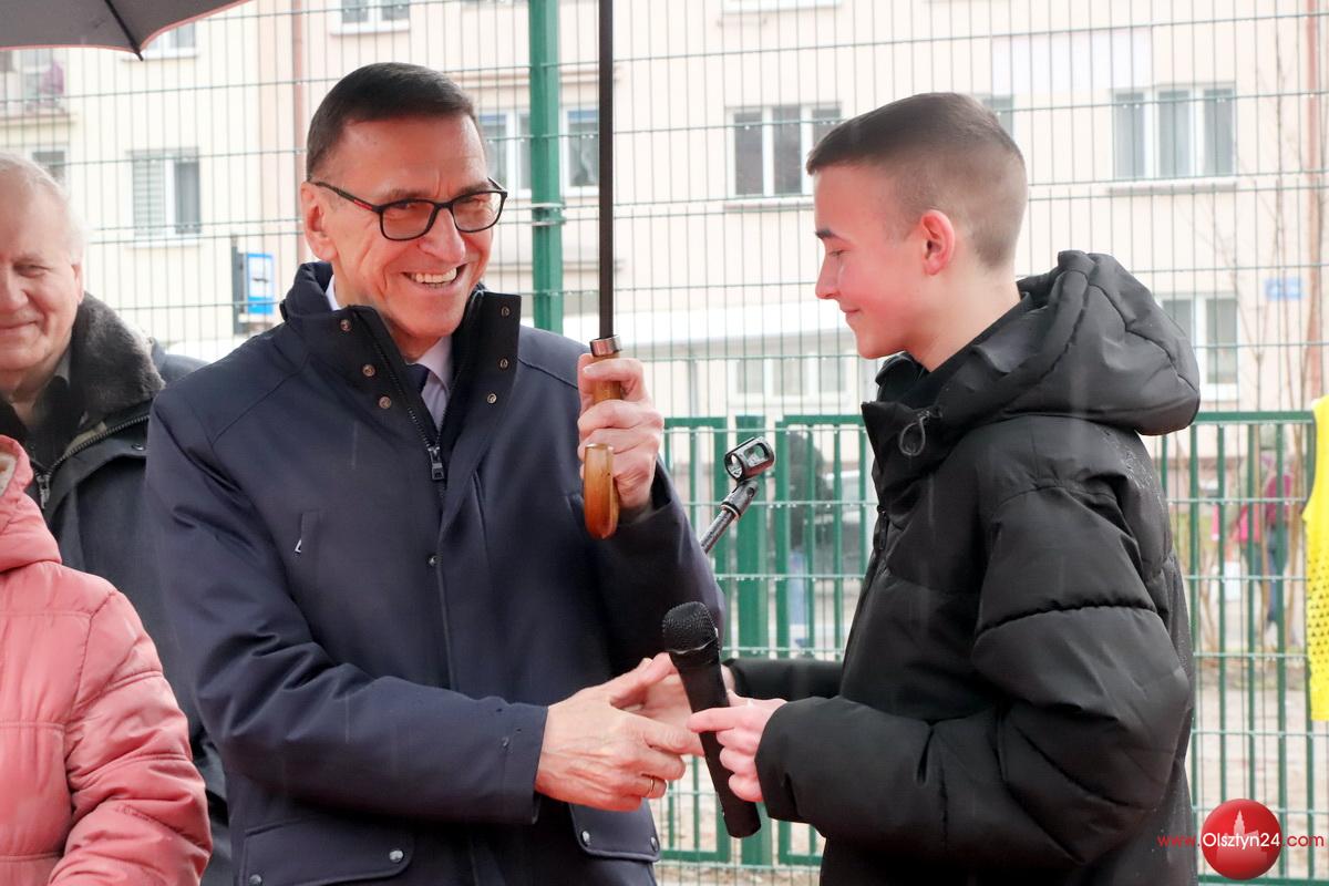Uroczystość otwarcia boiska do koszykówki zrealizowanego w ramach Olsztyńskiego Budżetu Obywatelskiego | III LO w Olsztynie | 21.03.2024